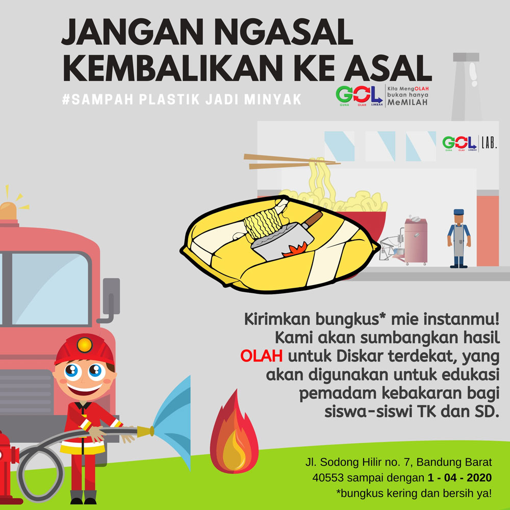 Guna Olah Limbah telah melakukan riset bertahun-tahun untuk mengolah jenis limbah plastic nondaurulang tersebut. Dengan menggunakan teknologi pirolisis, limbah plastik mie instan dapat diolah hingga menghasilkan minyak bakar.